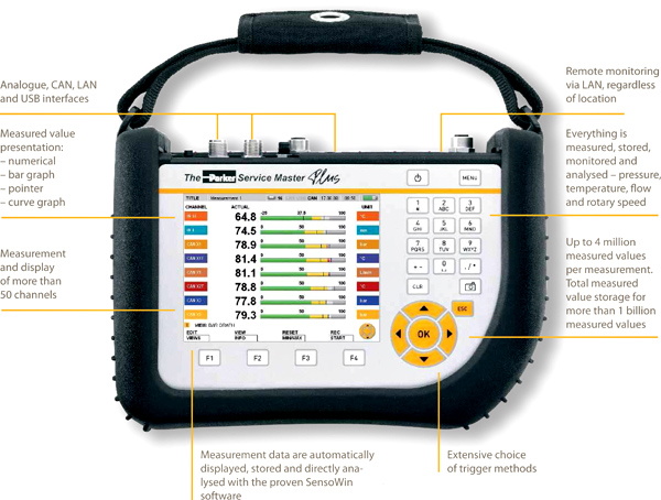 In combination with the trusted SensoWin® PC software, which includes additional analysis, control and remote maintenance potential via LAN and USB, "The Service Master Plus“ represents a measuring instrument which can not only be operated intuitively, but is also suitable for every diagnostic application.